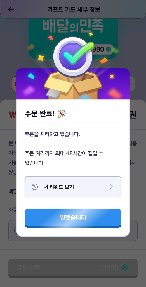 🎁게임하면서 배달의민족 상품권 받았어요!