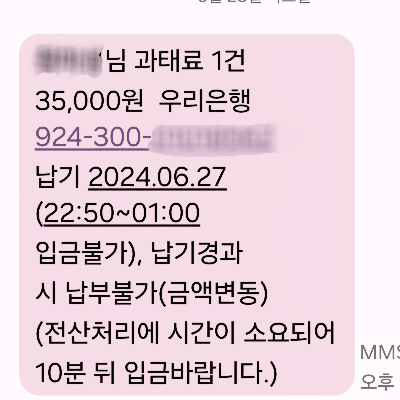 모바일에서 수급자 증명서 발급 요청 후 기관으로 보내기 기능도 있었는데, 출력 전 이런 기능이 있는지 몰라서 저는 그냥 출력해서 사진 찍어 보냈어요. 출력이 어려우신 분은 이 부분 미리 확인해 보시기 바랍니다. - 담당자로부터 감경된 금액과 입금전용 가상계좌, 납기 기한 문자 옴