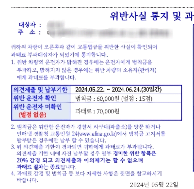 벌점 없는 과태료는 70,000원이지만 50% 감경으로 35,000원 납부한 내용 간단히 정리해봤습니다.
