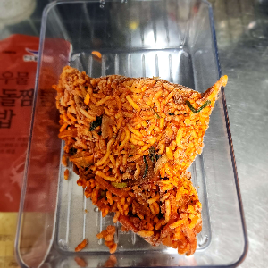 볶음밥처럼 전자레인지용 작은 용기에 담아 가 사무실에서 데워 먹으려고 했는데, 알고 보니 물 300cc를 넣고 전자레인지에 데워 먹는 거였어요.