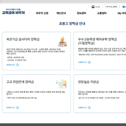 - 신청 : 한국장학재단 바우처 누리집(e-voucher.kosaf.go.kr)