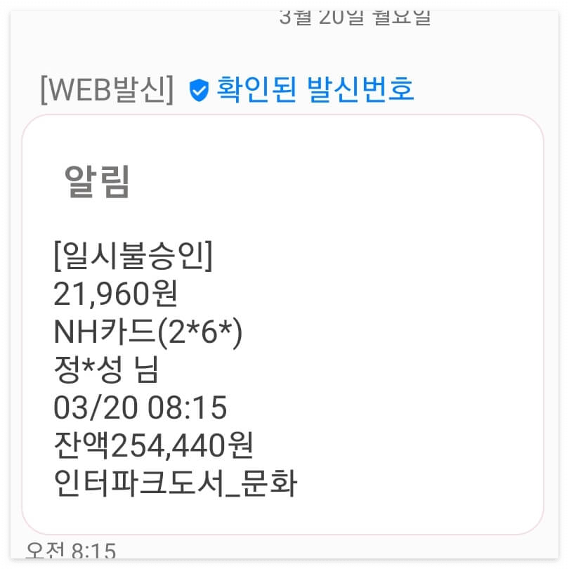 문화누리카드 잔액은 문화누리카드 앱에서 확인 가능하지만, 농협카드 알림으로도 확인 가능하답니다. 그래서 저는 농협카드 알림 문자는 휴대폰 문자 제일 위에 고정해 놓고 사용한답니다^^