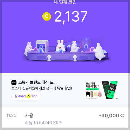 - 이벤트나 게임 등의 다양한 방법으로 코인 적립 가능