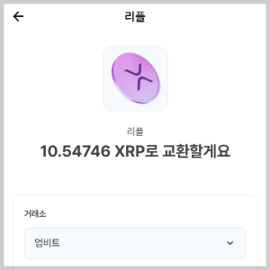 4. 여기서부터 저의 복잡한 과정이 시작 답니다. 이미 교환하기를 눌러놓은 상태였는데 리플은 '업비트'지갑으로만 받을 수 있었어요.