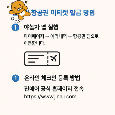 - '이티켓 보기' 또는 '탑승권 확인' 버튼 클릭 시, 진에어 공식 홈페이지로 연결됩니다.