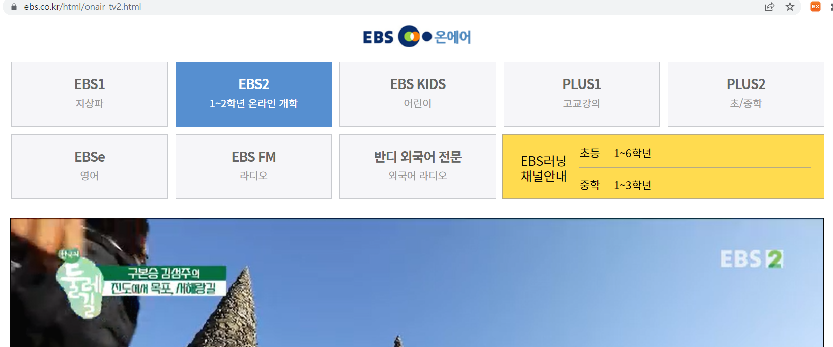 (EBS2 홈페이지 공지사항에서 강의 방송 채널 안내표가 나와 있었습니다. 참고하세요)