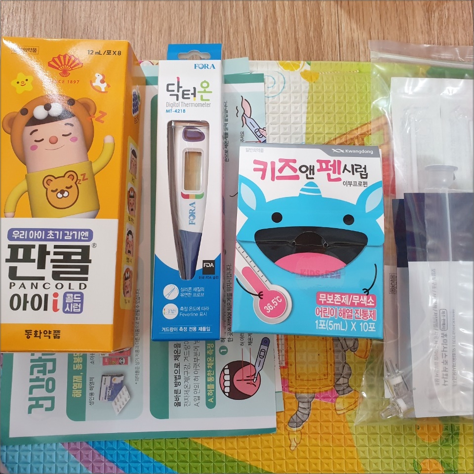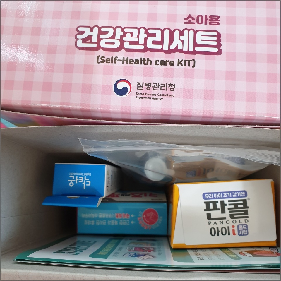 구성품으로는 판콜, 체온계, 해열제, 보호자용 자가검진키트 - 딱 안내되어있던 대로 들어있었습니다.
