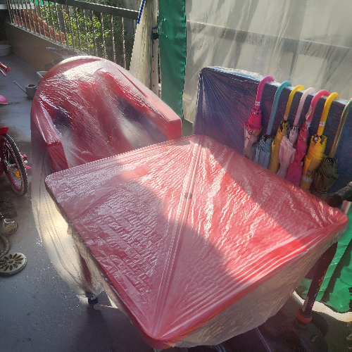 필요할 때 쉽게 씌우고, 사용하지 않을 땐 접어서 보관하니 공간도 차지하지 않아 편리했습니다. - 비닐 소재지만 의외로 튼튼함